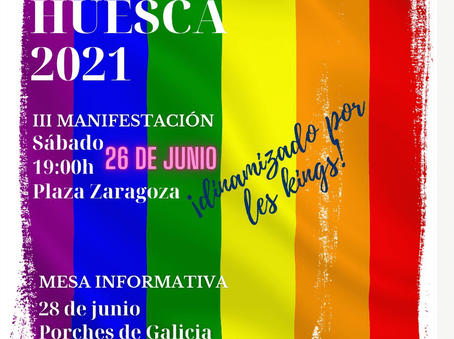 La coordinadora 28J convoca una manifestación el próximo sábado 26 de junio en Huesca con motivo del día del Orgullo. Además, el lunes 28 de junio llevarán a cabo una mesa informativa en los porches de Galicia.